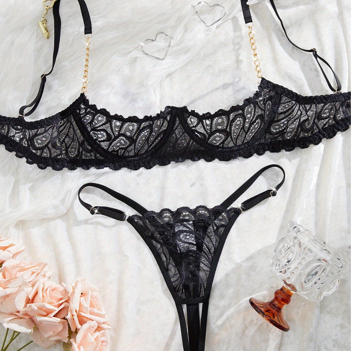 Setelan Pakaian Dalam Erotis Renda Kebocoran Payudara Setengah Cangkir Rantai Penjualan Setengah Cangkir