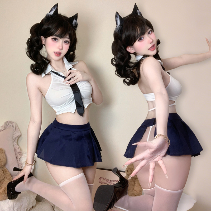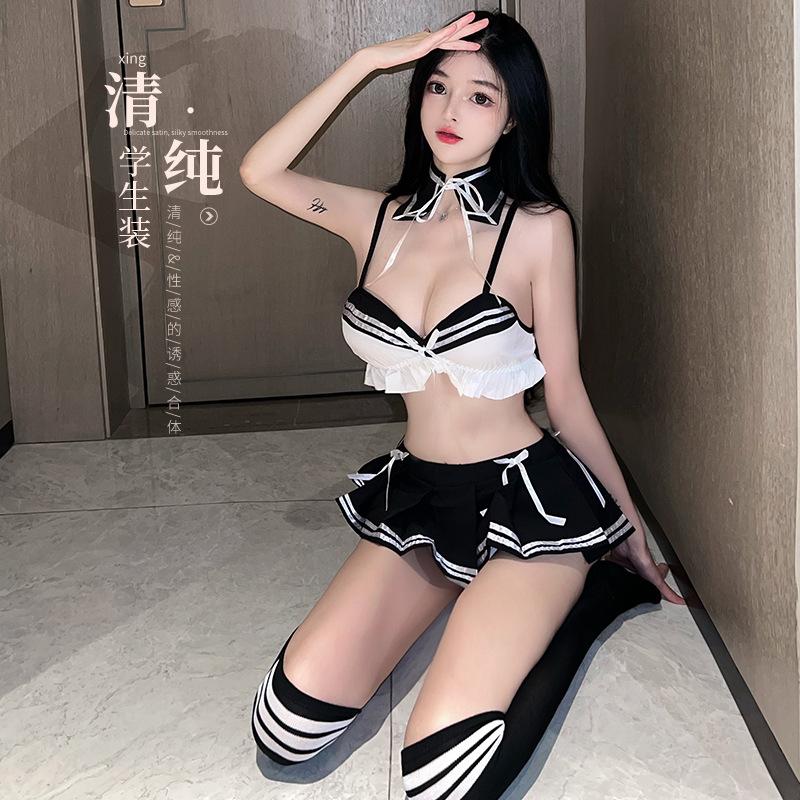Lin linting lingerie seksi, lingerie seksi keinginan murni, pakaian siswa, rok seragam berlipat ultra pendek menggoda, setelan 2546