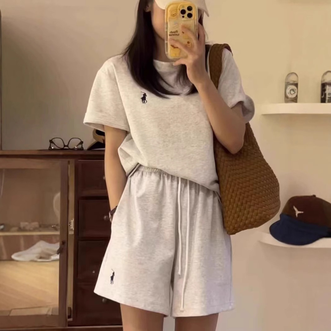 Setelan Pakaian Olahraga Kasual Katun Wanita Gemuk Musim Panas Pria Kecil Longgar Menjalankan Celana Pendek Siswa Lengan Pendek Dua Potong