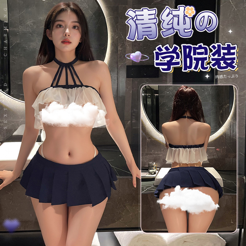 Di bawah bulan bisikan lingerie seksi pakaian siswa wanita rok berlipat terpisah setelan seragam seksi godaan pabrik grosir