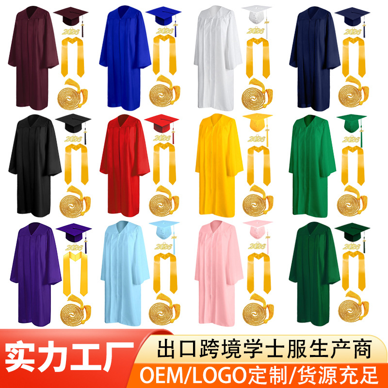 Grosir jubah wisuda tahun 2025 untuk ijazah sarjana, pascasarjana, dan doktor dalam gaya Eropa dan Amerika untuk upacara wisuda sekolah menengah dan universitas dewasa.