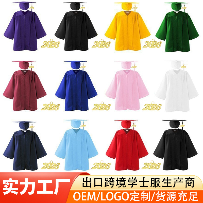 Setelan jubah wisuda rajutan Eropa dan Amerika tahun 2025 untuk anak-anak TK, jubah doktor sekolah dasar, pakaian fotografi pertunjukan.