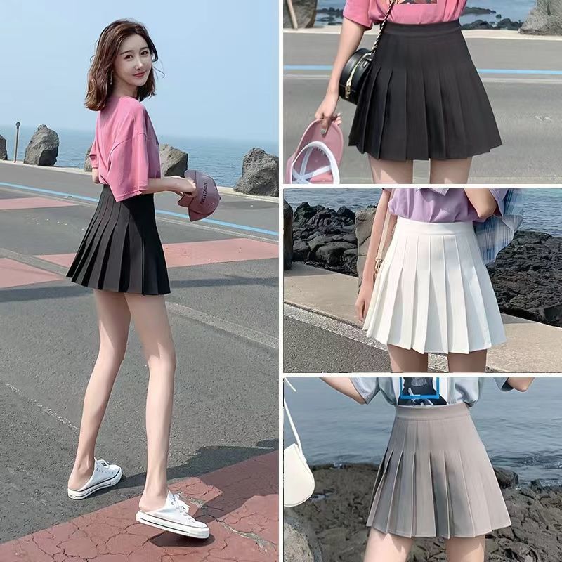 Jk rok lipit wanita pinggang tinggi, Rok lipit model Korea pinggang tinggi seksi untuk pelajar, Rok lipit a-line anti Keriput