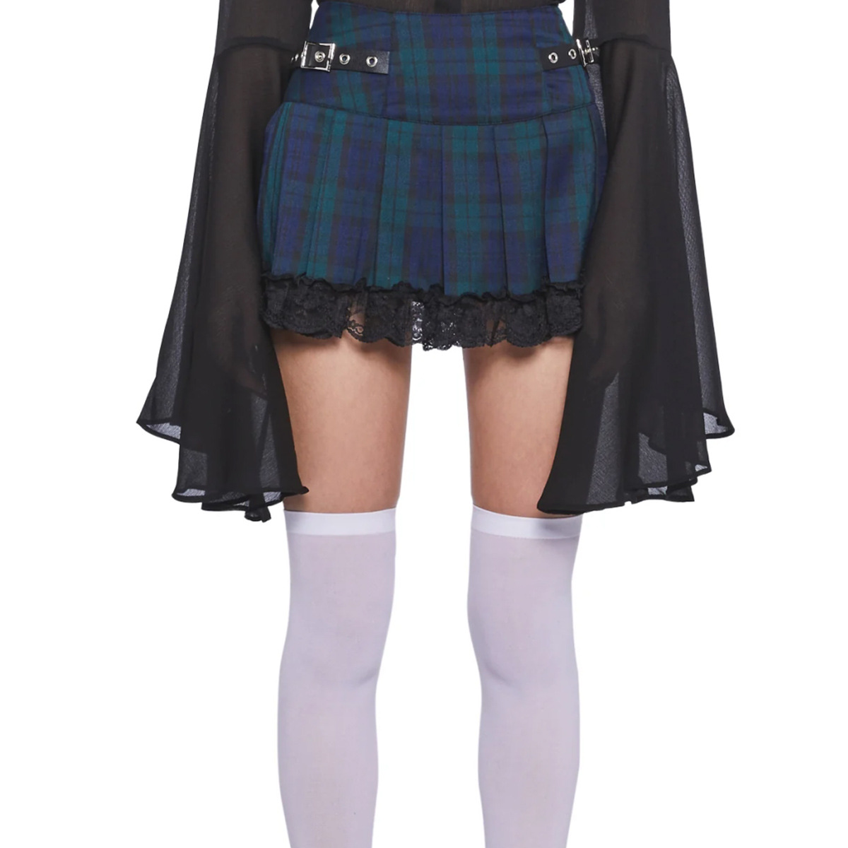 Rok lipit jahitan renda bergaris gaya preppy JK anak perempuan populer baru musim panas rok a-line seksi pinggang rendah