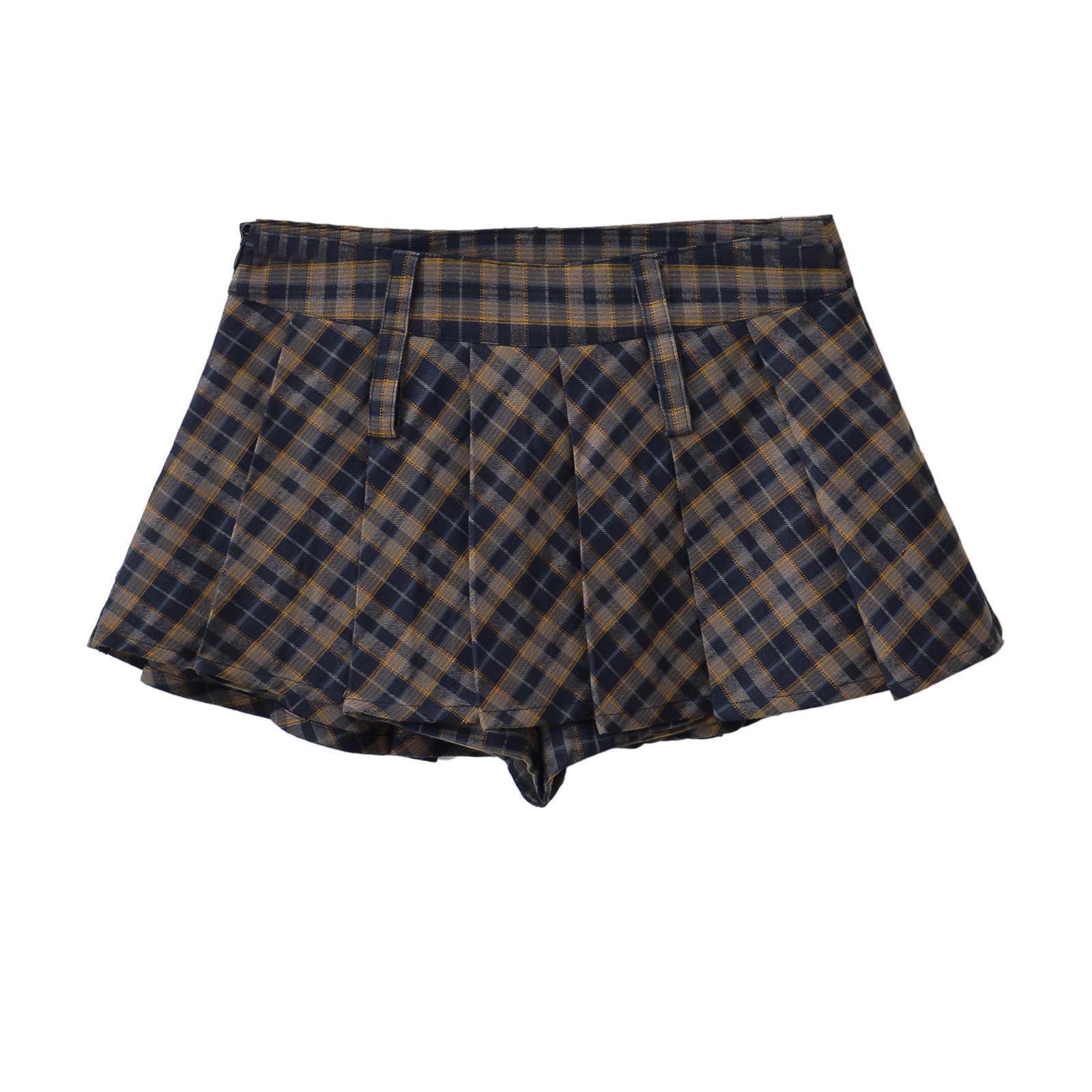Aprikot kecil pertengahan/asli asli musim semi dan musim panas sekolah musim semi rok kotak-kotak gaya sekolah rok lipit rok pendek