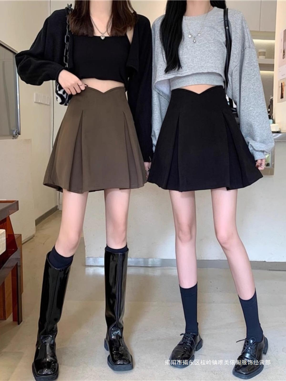 Rok lipit hitam Super populer rok wanita musim semi dan musim gugur 2023 rok a-line pinggang tinggi baru rok pendek jk kecil