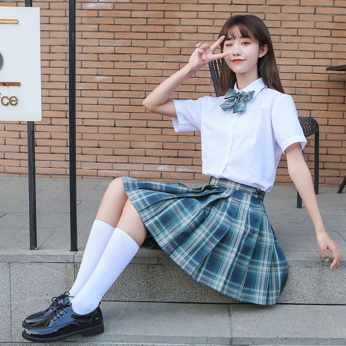 Jk seragam gaya kuliah baju seragam sekolah menengah sweter hitam rok berlipat kemeja lengan panjang setelan musim gugur