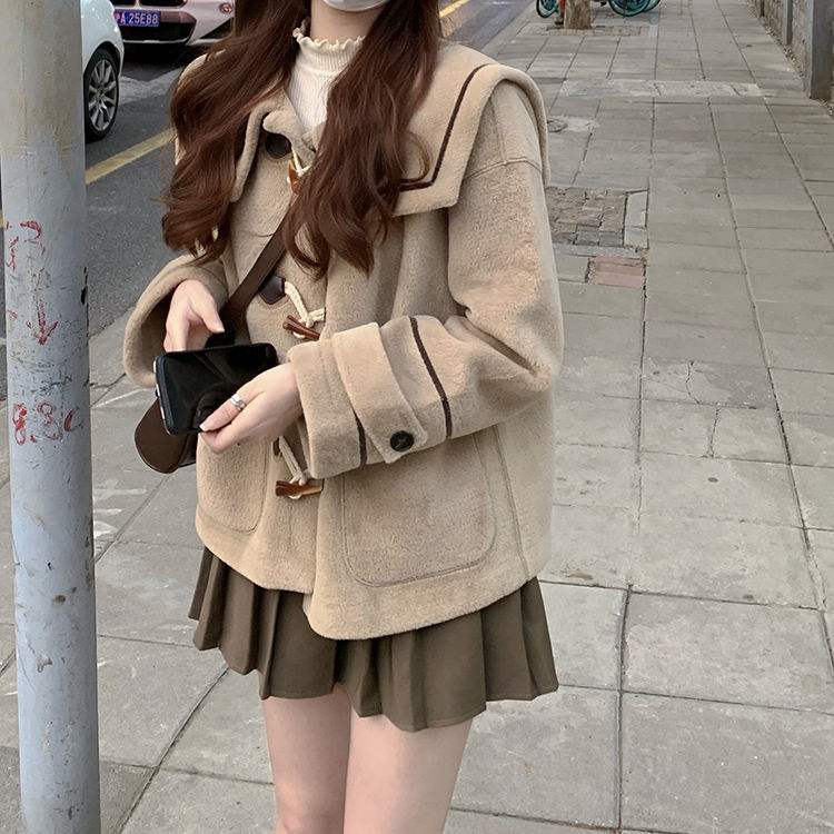 Qigu Niang jaket gaya preppy Inggris, setelan seragam JK wanita musim semi dan musim gugur rok berlipat kecil kasual