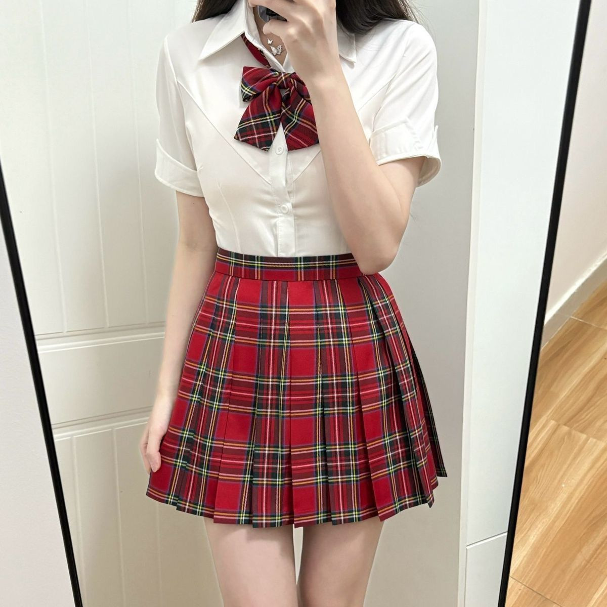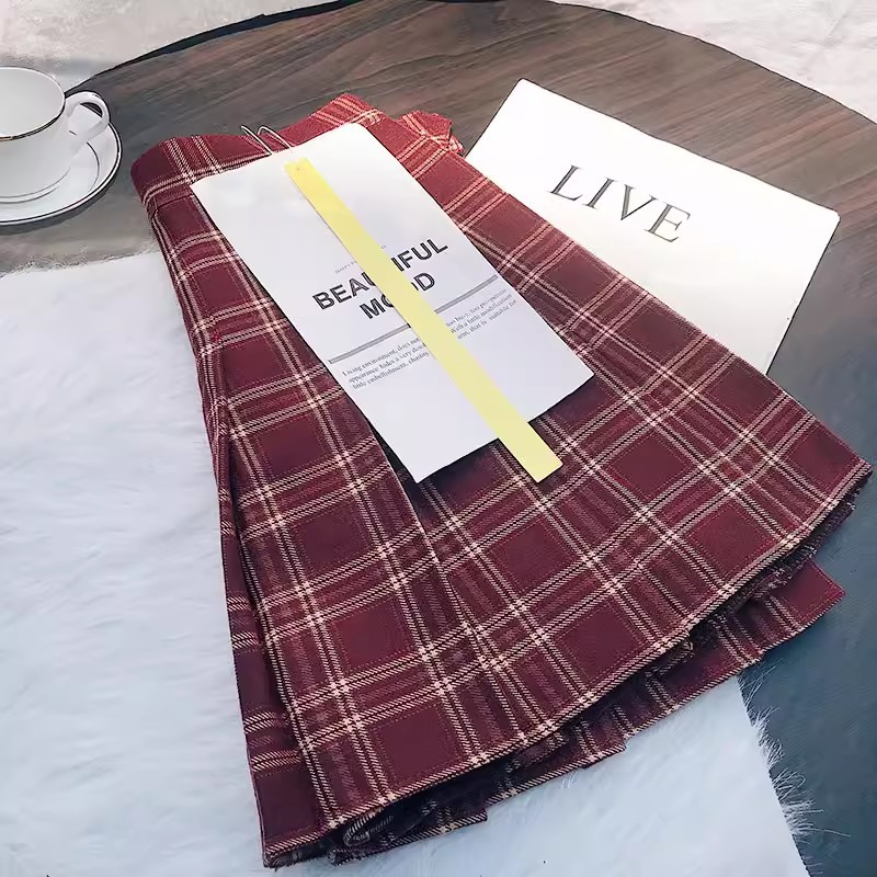 Rok Lipit Rok JK Rok Setengah Badan Pedas Manis dan Pedas Warna Merah Rok Pendek Gadis Kampus Seragam Rok A-Line Model Baru Set