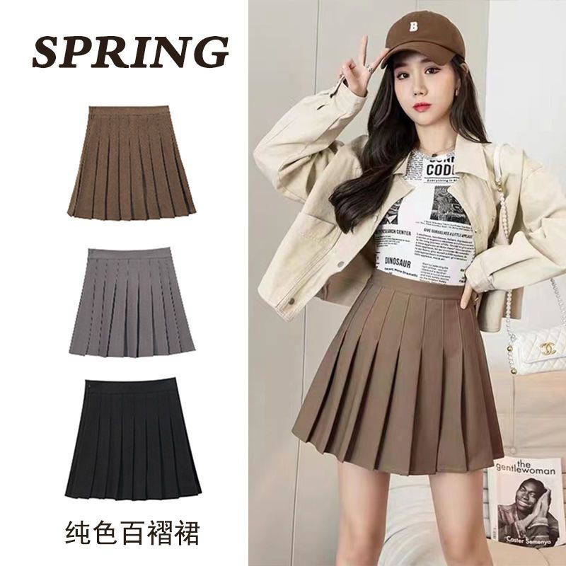 Rok lipit JK, Rok lipit + celana keselamatan + ritsleting + kancing, rok seragam Musim Semi dan musim panas musim gugur dan musim dingin