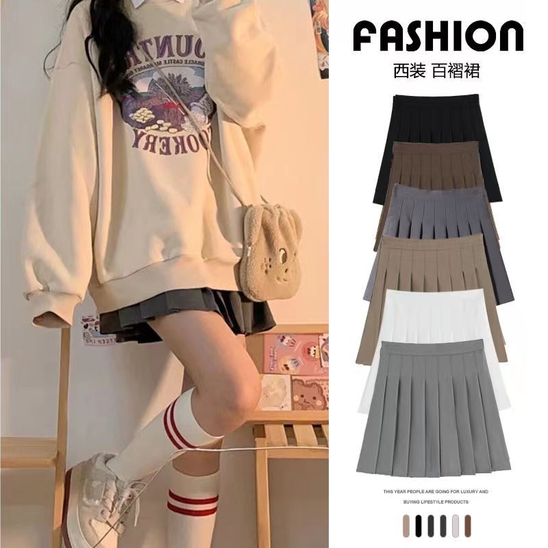Rok Lipit Wanita Rok Pendek JK Terlihat Langsing Pinggang Tinggi Gaya Kampus Rok Setengah Badan Kecil Mudah Dipadu Padan Rok Huruf A Anti Terungkap Musim Panas