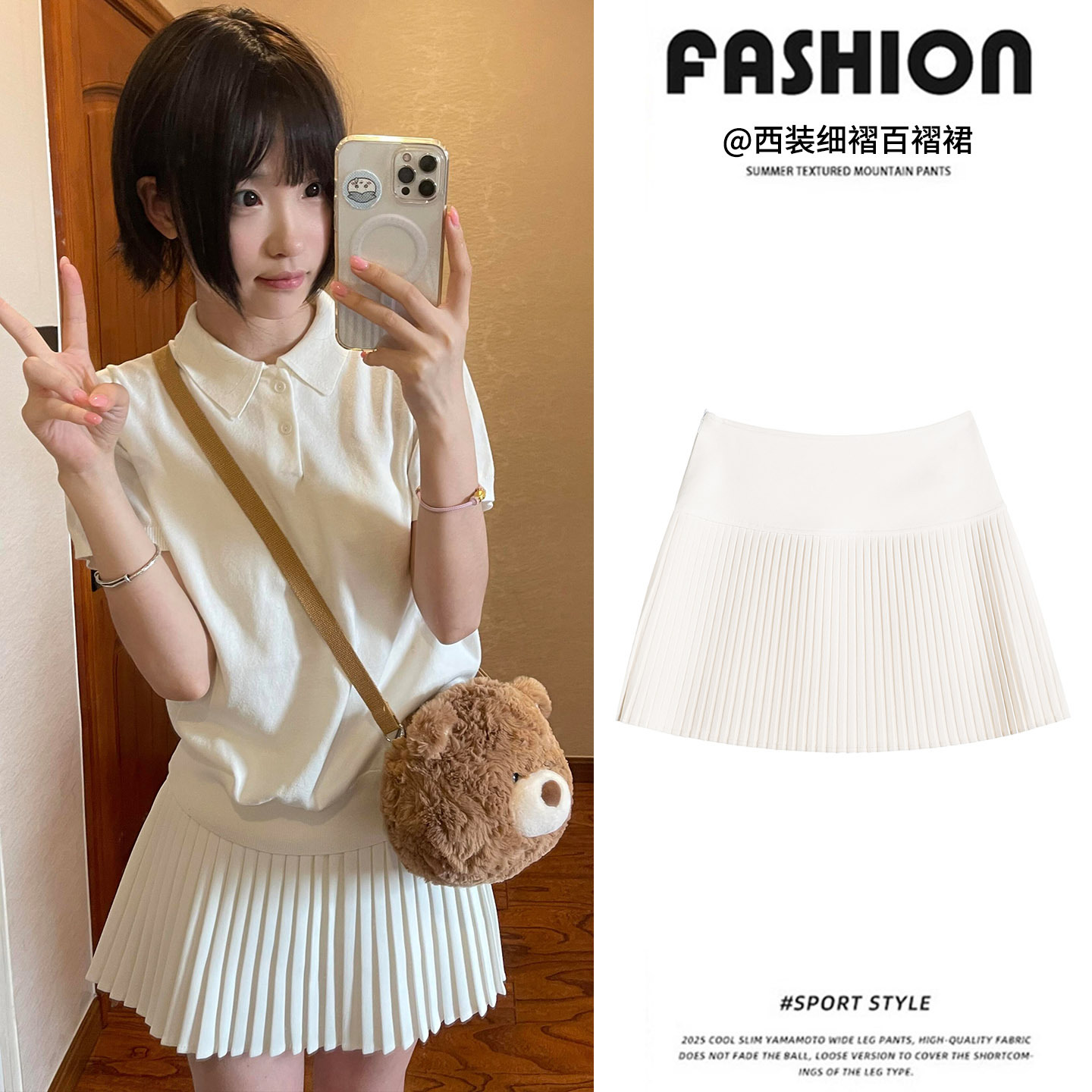 Rok Lipit Putih Rok Pendek JK Mudah Dipadu Padan Tubuh Kecil Terlihat Ramping Model Baru 2025 Model Tipis Musim Panas Wanita Rok Setengah Badan Tubuh Kecil