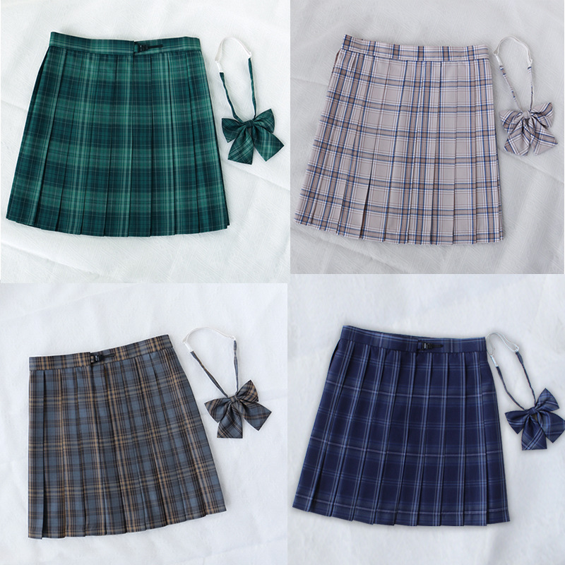 Setelan rok lipit Jepang, rok kotak-kotak + dasi kupu-kupu + kemeja lengan pendek putih murni + rok seragam kotak-kotak jk