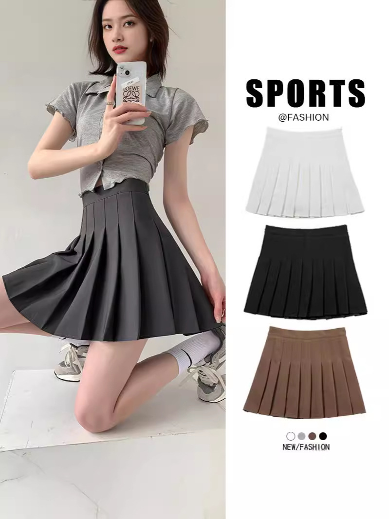 Rok lipit jk dekoder Anti paparan rok seragam warna polos model anak sekolah rok pinggang tinggi dasar dengan rok Legging