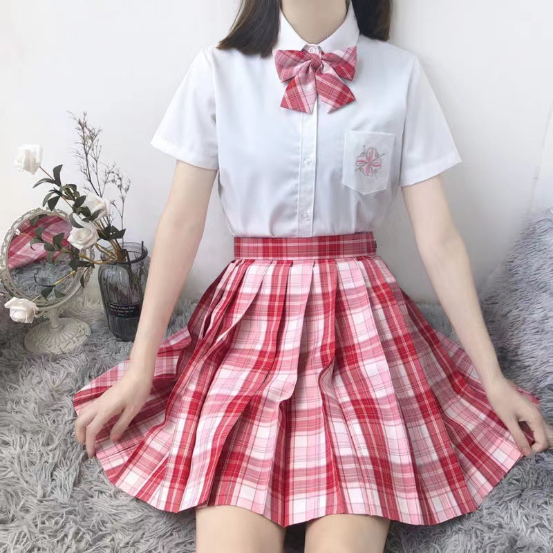 [Yu Feng] Kemeja Lengan Pendek Pinggang Seragam JK Akademi Jepang Asli Kemeja Putih Slim Fit Set Rok Asli