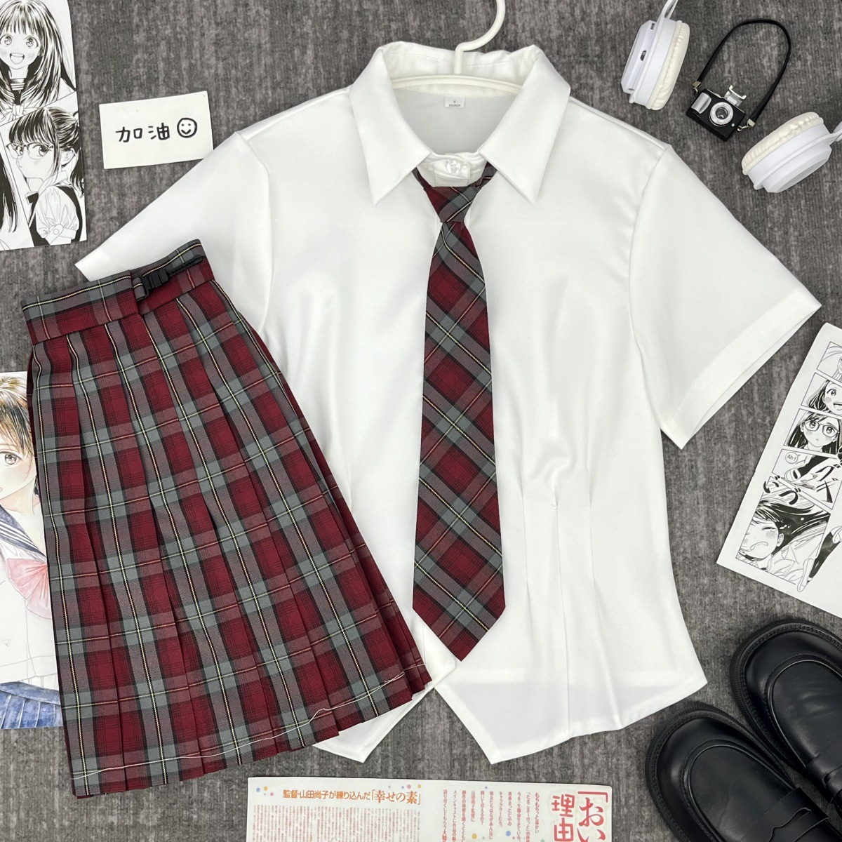 Kaus lengan pendek JK seragam, rok kemeja Gaun rok lipit musim panas dua potong kasual