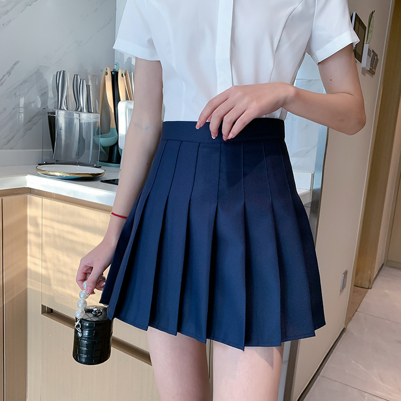 Rok lipit wanita, Rok lipit pelajar wanita musim semi dan musim panas warna solid rok pendek gaya kuliah pinggang tinggi pelangsing a-line rok setengah kecil