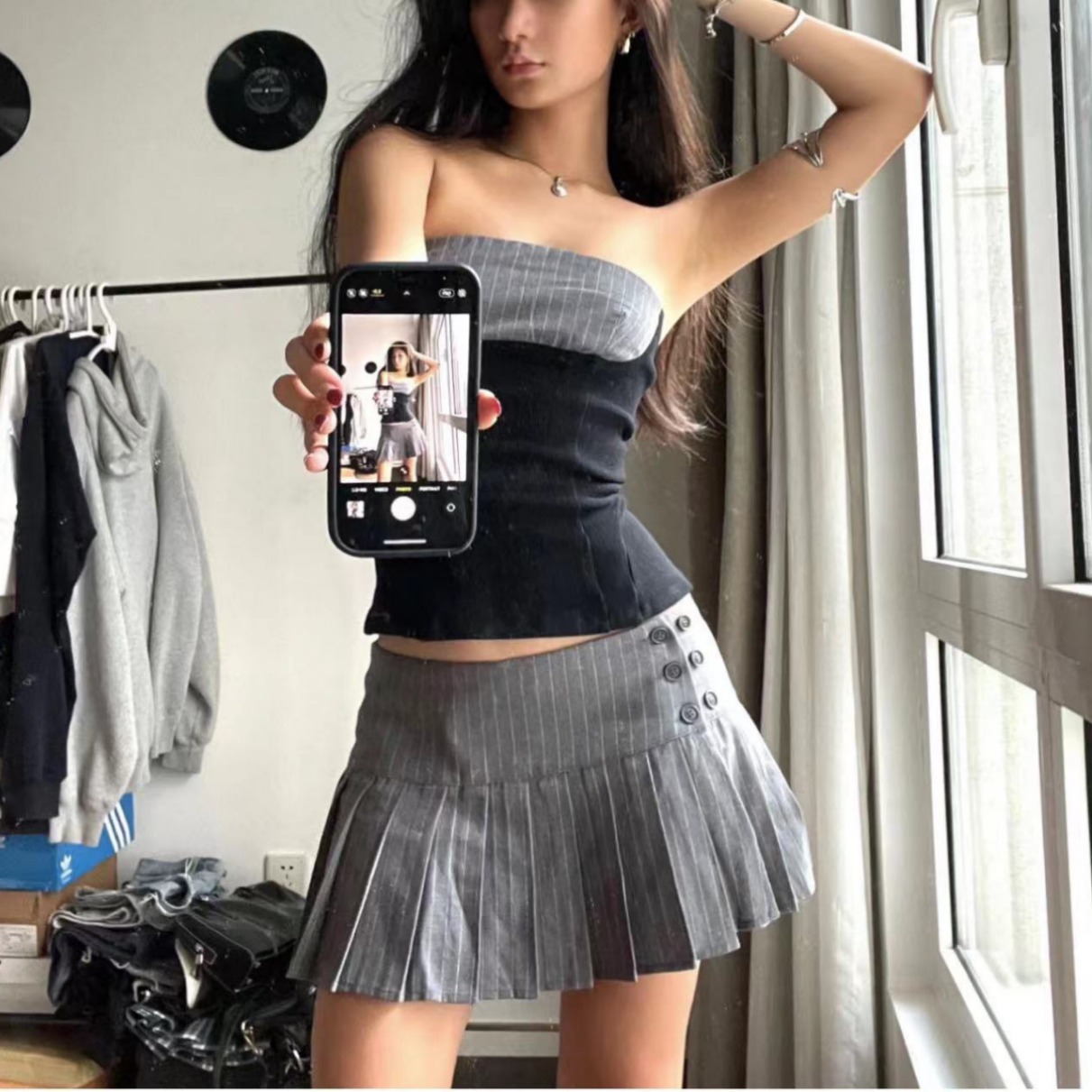 Seragam sekolah pelajar, Gaun rok a-line rok lipit mode musim gugur dan musim dingin dan musim panas