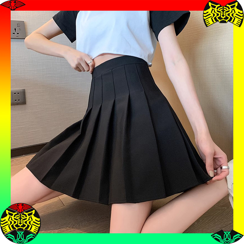 Rok lipit pinggang tinggi wanita, Rok lipit a-line gaya Korea musim semi netral celana pelajar Musim Panas 2020