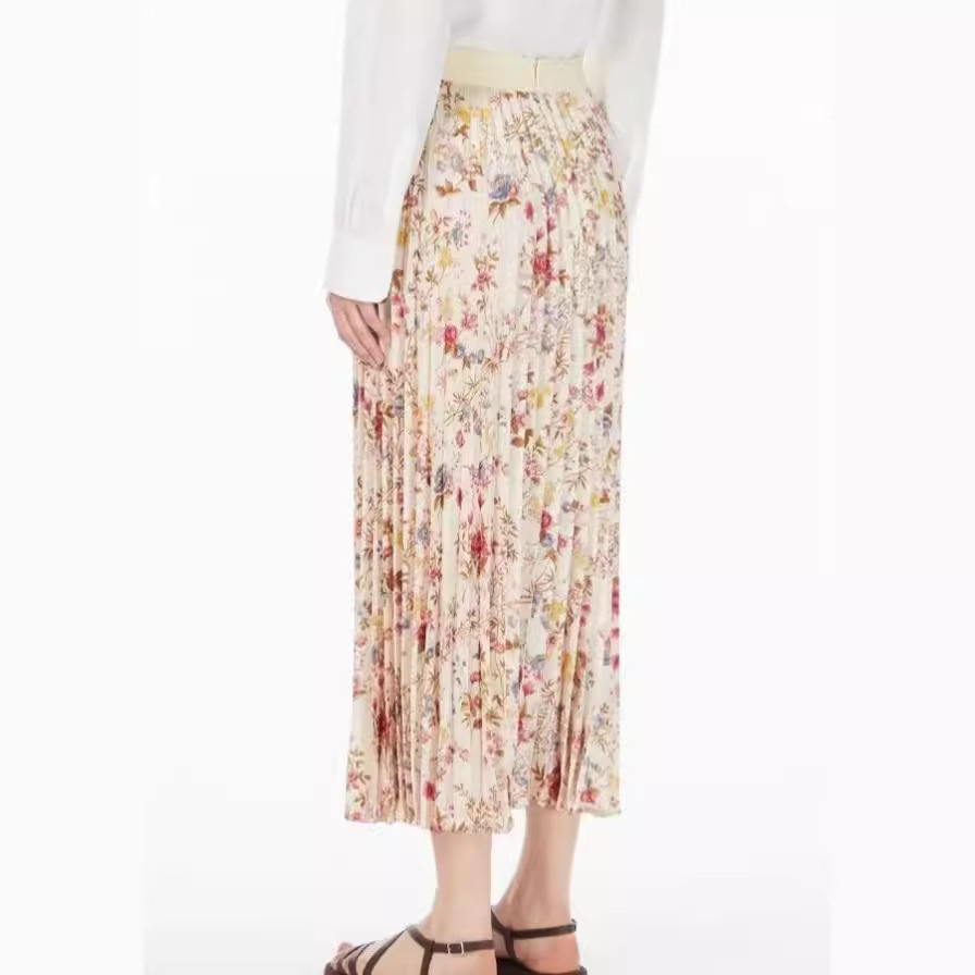 Desainer Perancis Model sama M * M * 2024 musim semi dan musim panas pinggang elastis rok berlipat panjang menengah Cetak