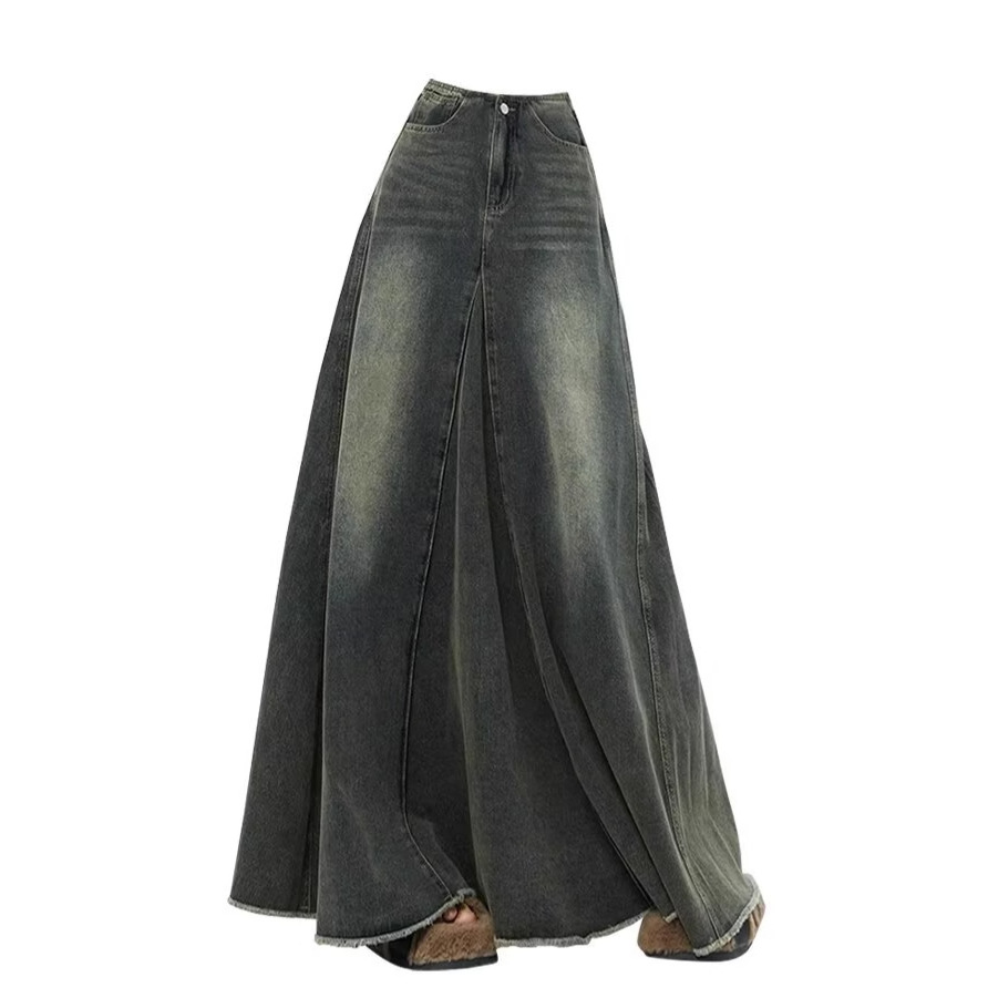 Rok Setengah Badan Denim Ekor Ikan Retro Gaya Amerika Rok Besar Model Setengah Panjang Menutupi Pinggang Tinggi Terlihat Ramping Model Baru Musim Panas Wanita