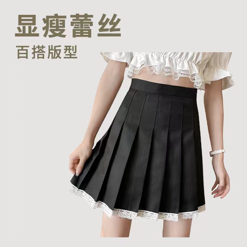 Rok lipit renda anak perempuan, rok pelangsing musim panas ukuran Plus, rok pinggang tinggi anti-paparan