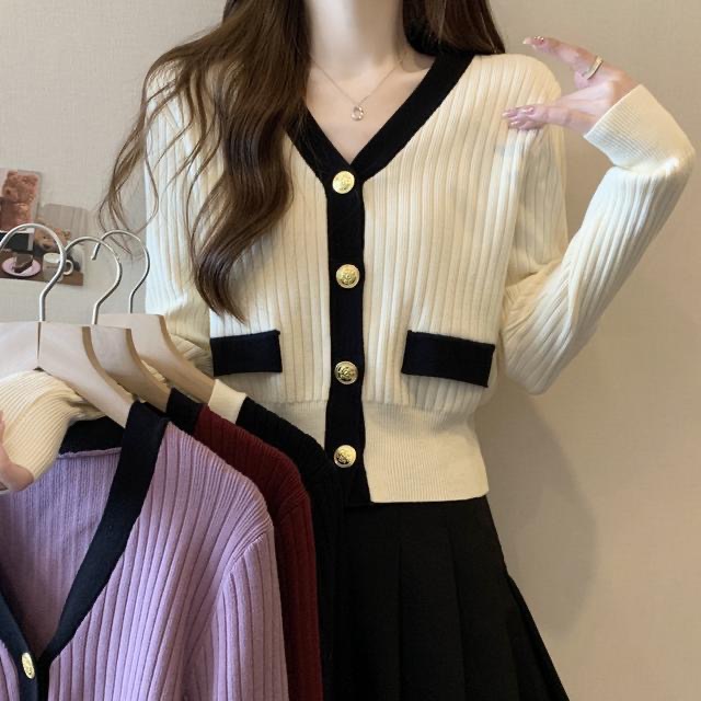 短款小香风V领毛衣女秋季2024新款女装爆款长袖针织开衫外套上衣