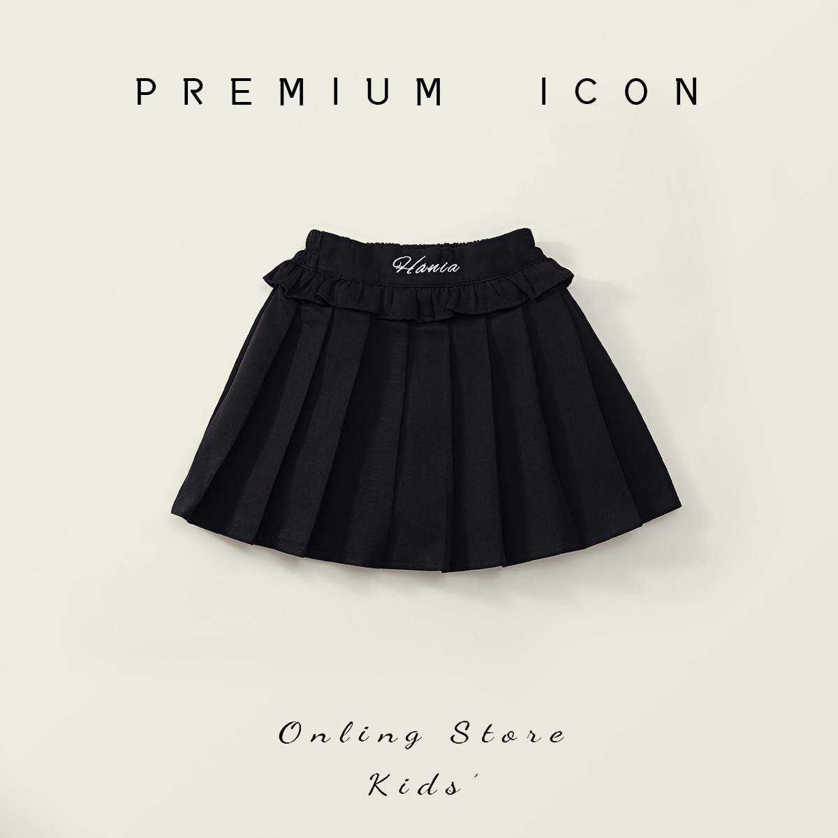 Rok Lipit JK Gaya Sekolah Anak Perempuan Model Baru Musim Panas 2025 Rok Setengah Badan Bordir Warna Hitam Versi Korea Anak Kecil dan Menengah