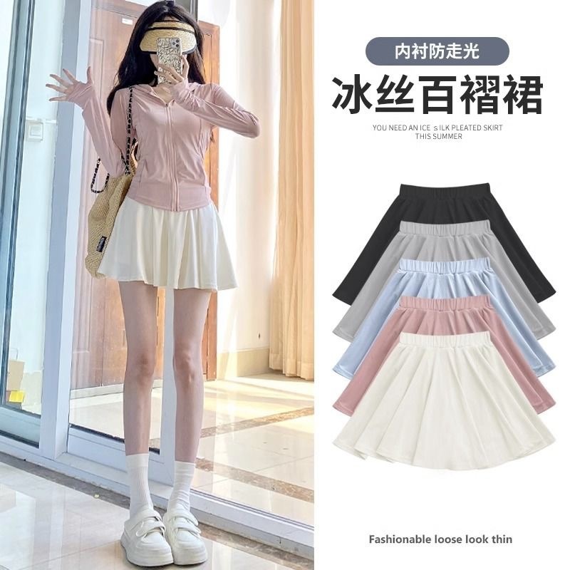 Rok Lipit Dopamin Wanita Musim Panas 2023 Model Baru Pinggang Tinggi Terlihat Langsing Siswa Netral Sutra Es Anti Terungkap Rok Pendek