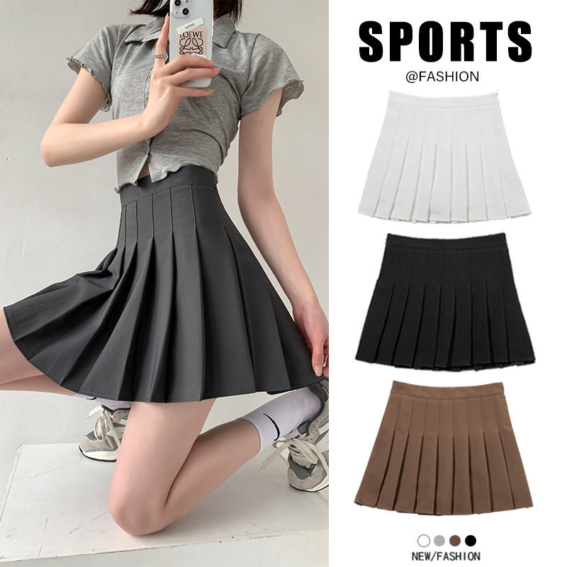 Rok Setengah Badan Warna Abu-abu Rok Lipit Model Baru 2025 Model Tipis Musim Panas Wanita Rok Pendek Huruf A Orang Kecil Pinggang Tinggi Rok Siswa