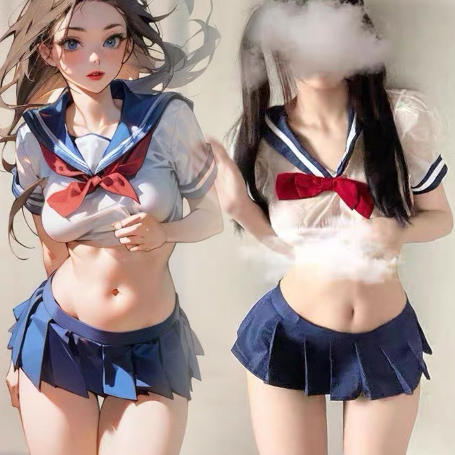 Manyan Pakaian Dalam Erotis Wanita Seragam Sekolah Seksi Pelaut Kerah Lipit Belahan Panas JK Set Rok Pendek 1620
