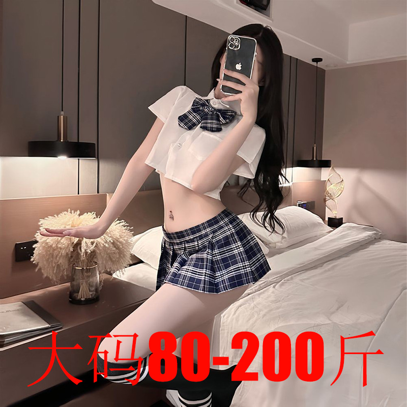 Ukuran Besar 200Kg Lingerie Seksi JK Seragam Godaan Rok Pendek Lipit Hot Pas Set 188