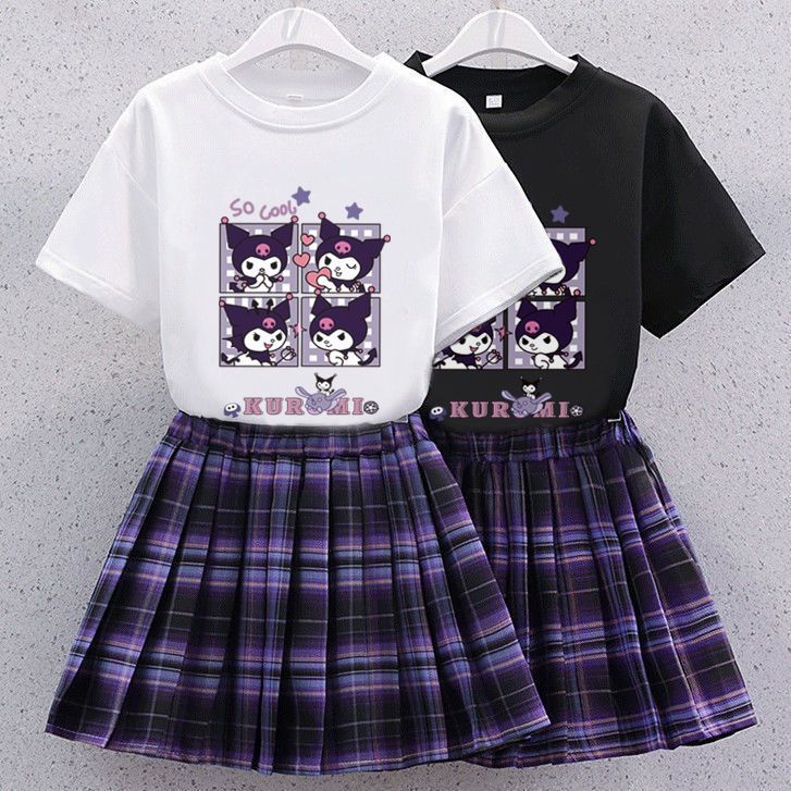 Setelan pakaian anak perempuan, kaus gaya Barat JK, pakaian musim panas rok pendek selebriti Internet sedang dan besar, rok lipit dua potong