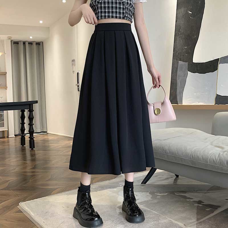 Rok lipit 2023 gaya Korea, rok lipit musim semi dan musim panas pinggang tinggi pelangsing a-line temperamen serbaguna siswa ins rok panjang sedang