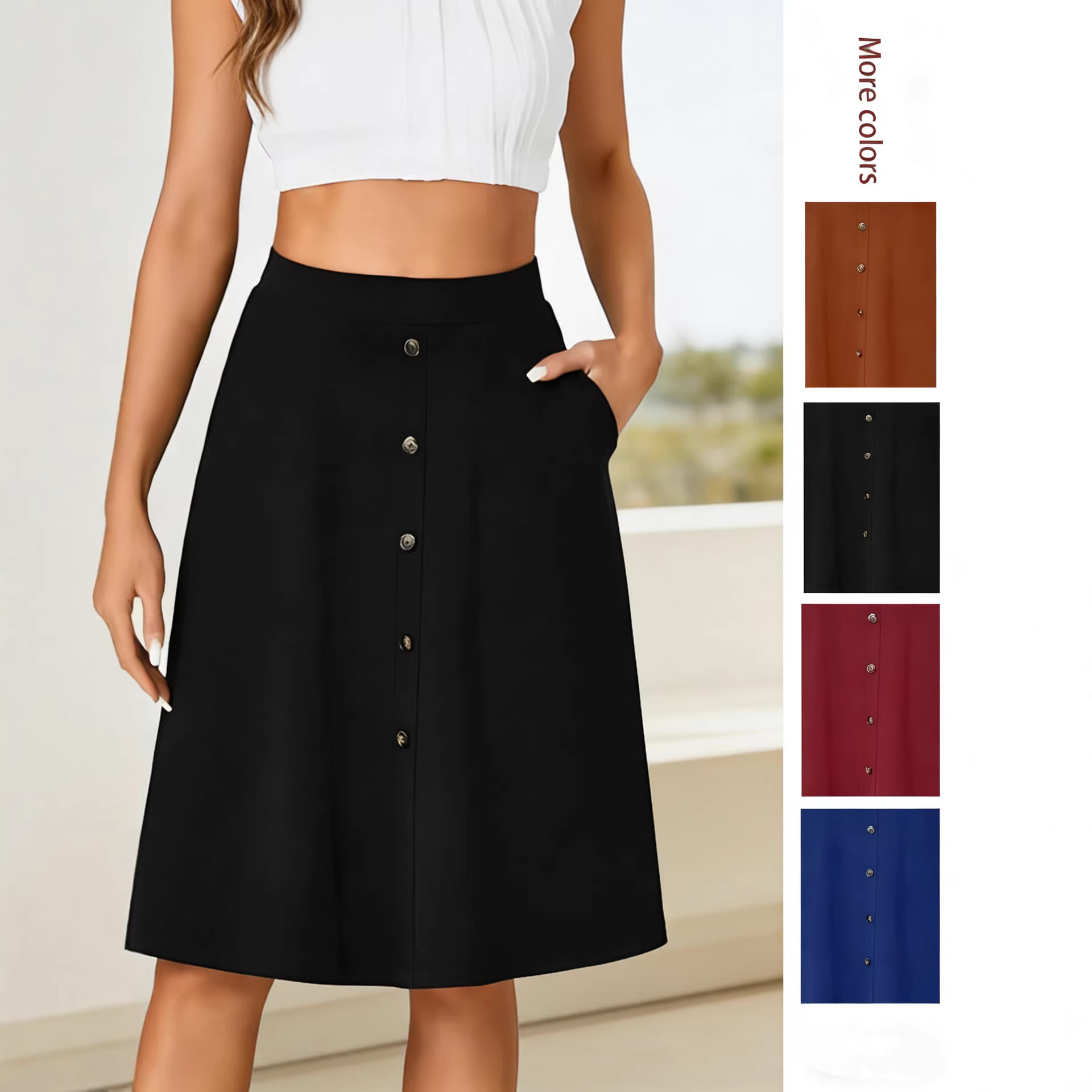 2025 Rok Setengah Badan Kasual Kancing Pinggang Tinggi Pakaian Wanita Lintas Batas Tiktok Eropa dan Amerika Berdiri Sendiri Model Baru Musim Panas Amazon