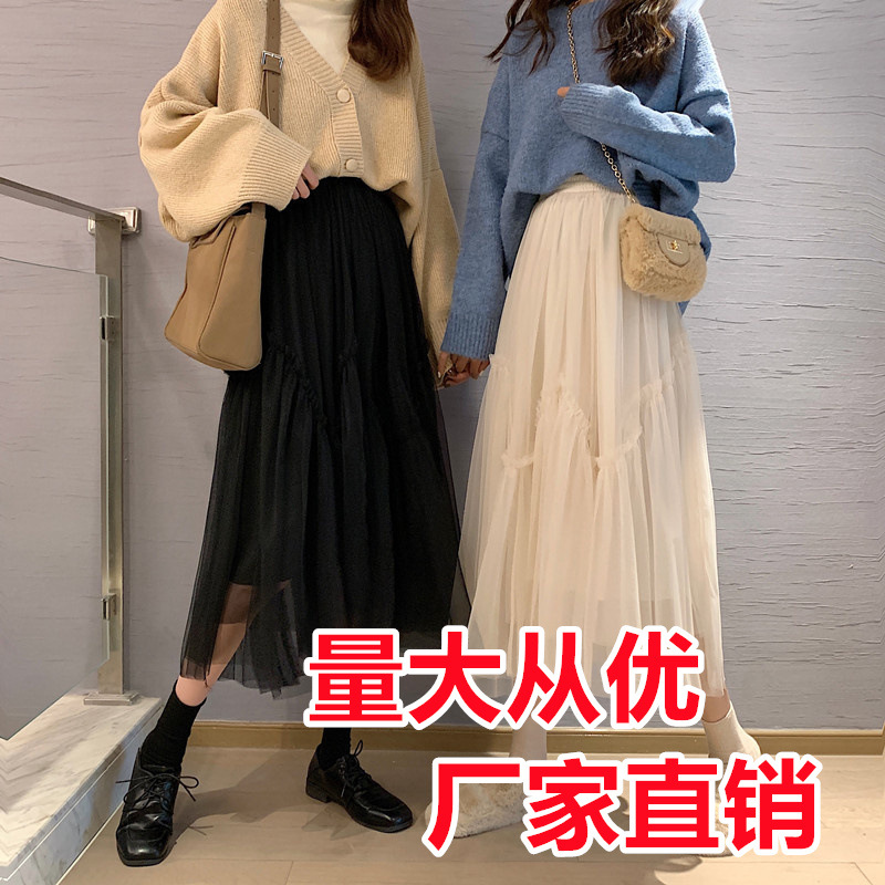 Rok a-line ramping wanita, bawahan desain panjang setengah pinggang tinggi, rok jala temperamen musim gugur 2023