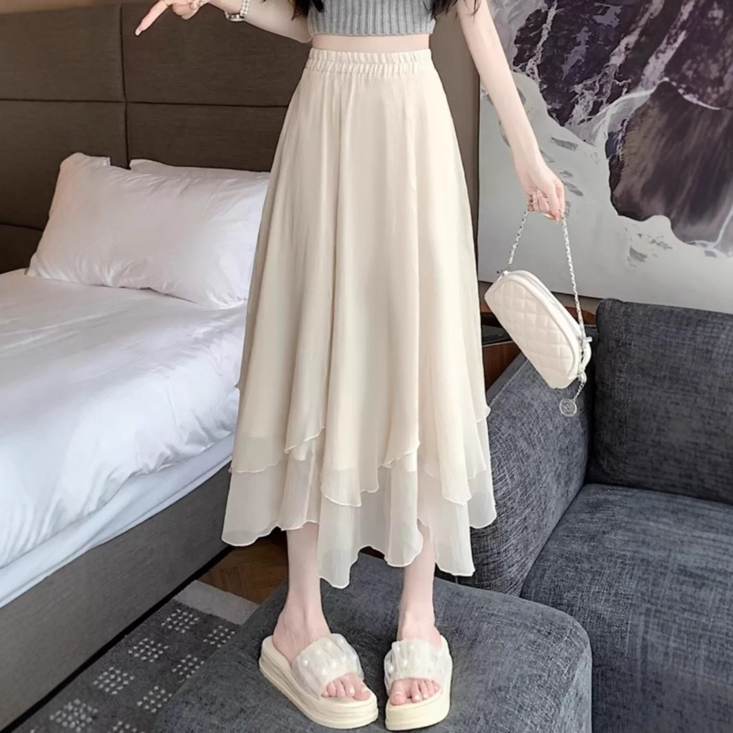 Rok Setengah Badan Rok Jaring Model Panjang A-Line Gaya Desain Pinggang Tinggi Model Baru 2025 Model Tipis Rok Panjang Musim Panas Wanita Mudah Dipadu Padan