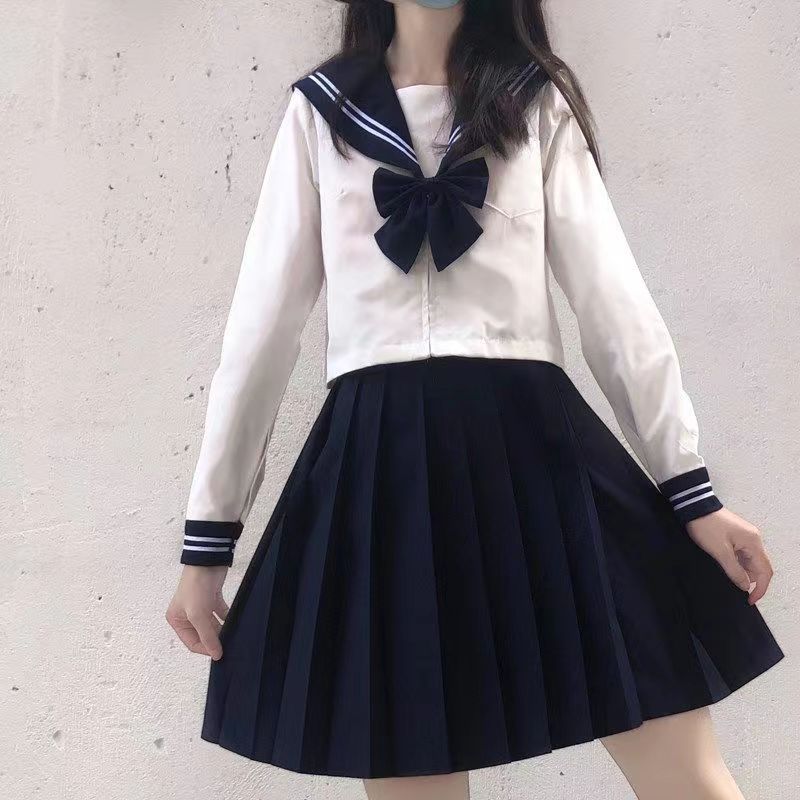 Grosir pakaian pelaut jk seragam dasar biru laut dua buku setelan wanita musim panas asli Jepang gaya kuliah rok panjang