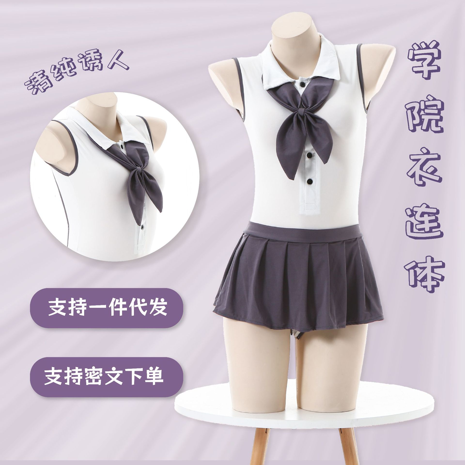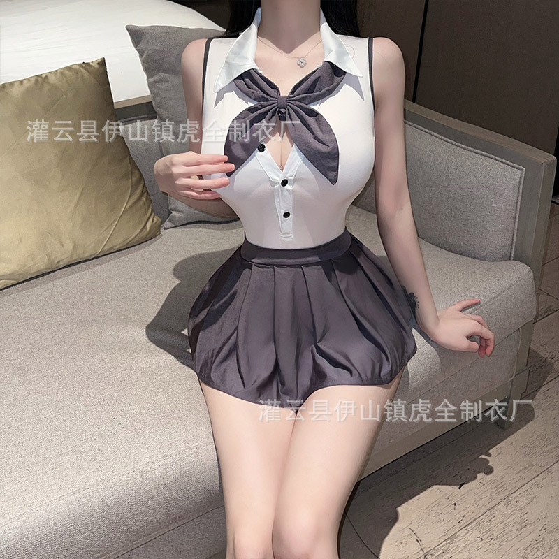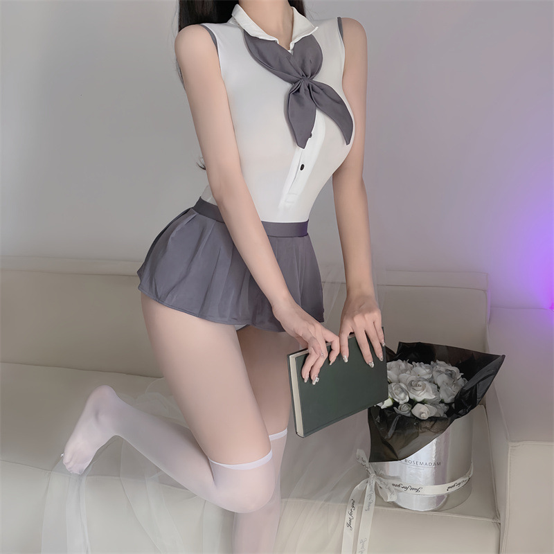 Lingerie seksi, pakaian siswa, seragam jk seksi, Rok lipit panas, permainan peran, setelan Gratis off, 0007