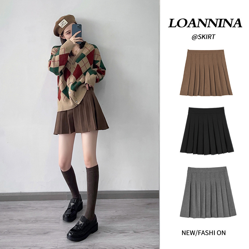 [Musim Dingin Chestnut] Agustus Surat JK Asli Asli Rok Lipit Seragam Perguruan Tinggi Rok JK kotak-kotak untuk Sekolah Rok Pendek Slim-fit