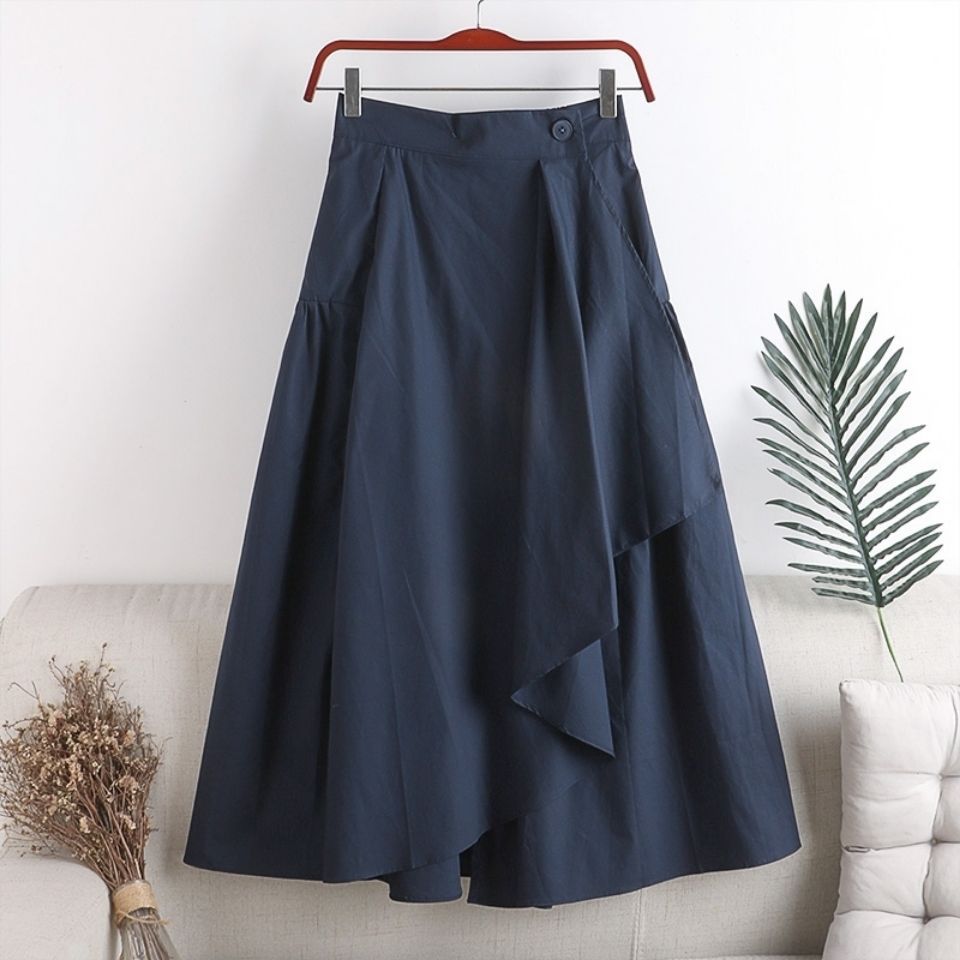 Rok lipit kurus siswa a-line, rok musim gugur gemuk ukuran plus wanita rok payung pinggang tinggi baru anti-cahaya MM