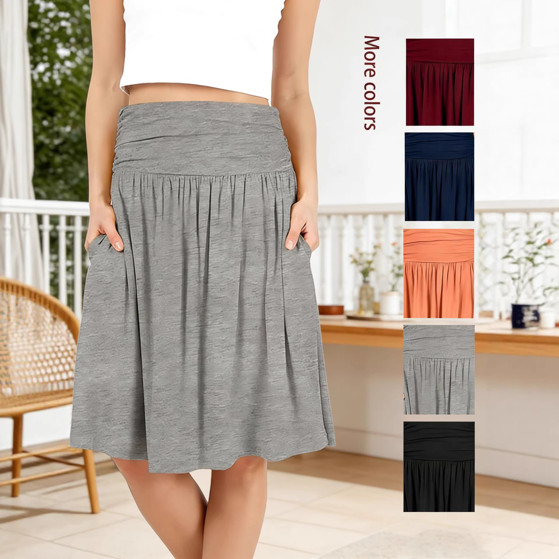 Rok lipit abu-abu untuk wanita, Rok lipit abu-abu musim semi musim gugur dan musim dingin, rok panjang setengah pinggang tinggi, rok a-line pelangsing ukuran plus untuk wanita 2023