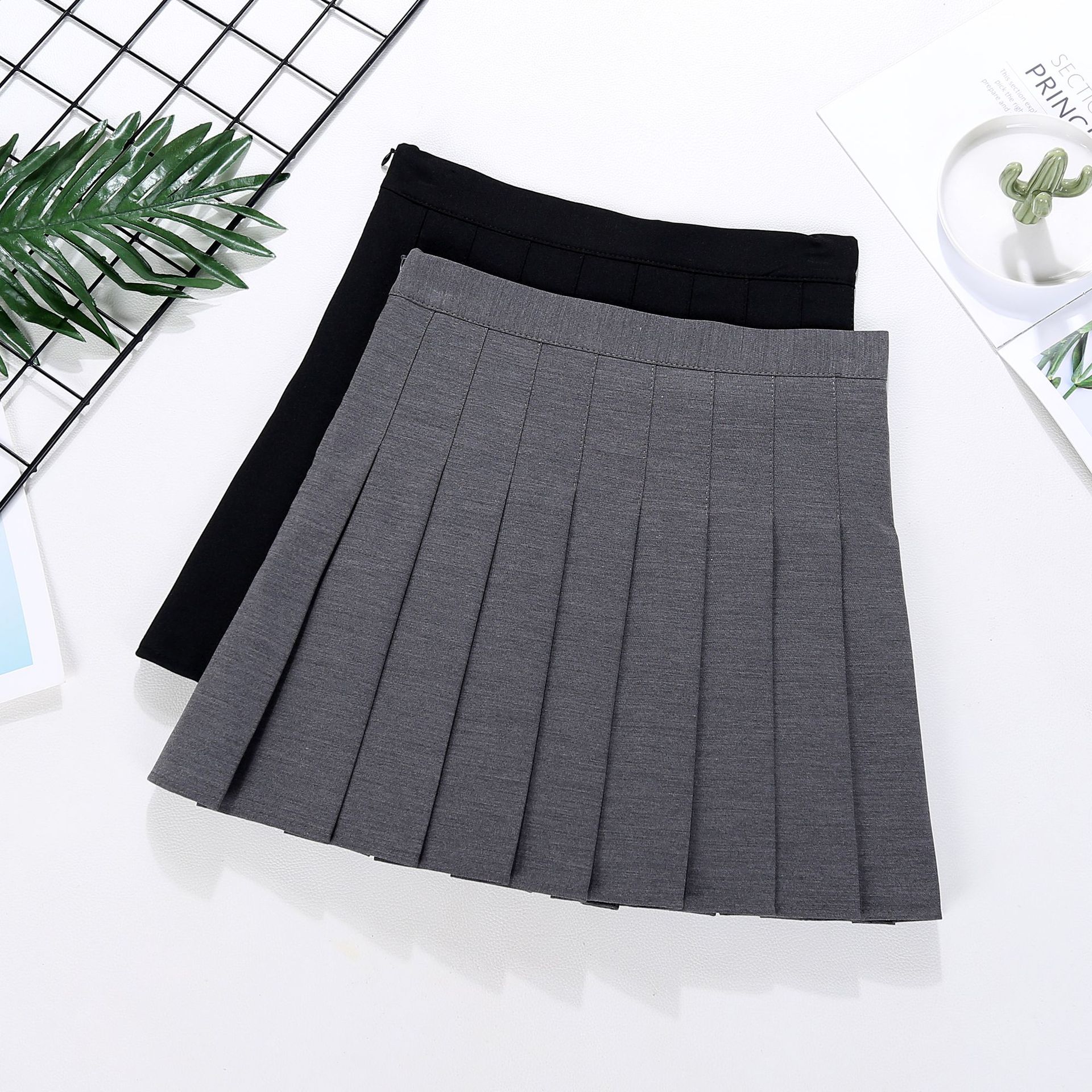 2022 dasar warna solid JK rok kotak-kotak asli abu-abu rok berlipat rok hitam pabrik penjualan langsung