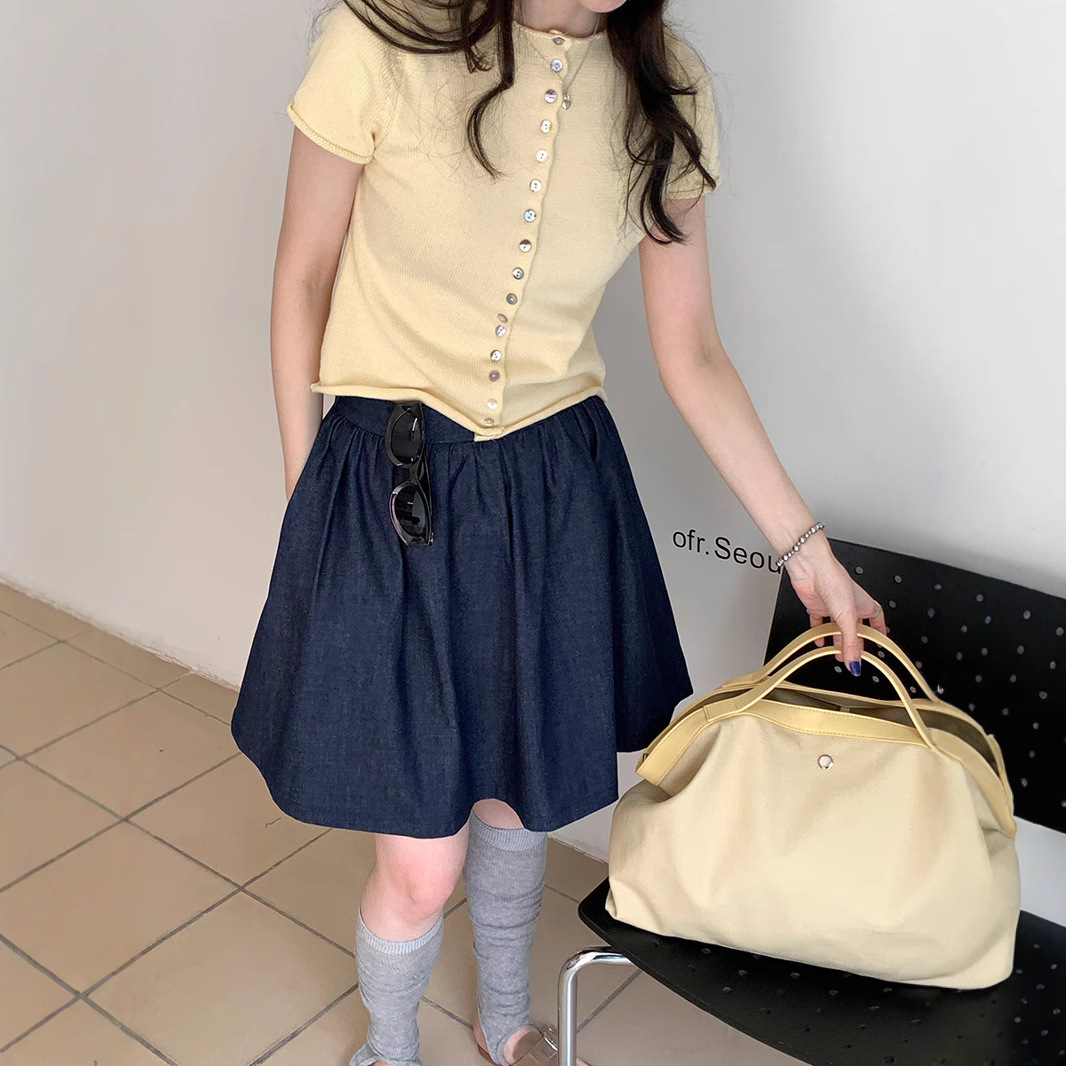 Rok Setengah Badan Denim Rok Terlihat Kurus Siswa Menutupi Pinggang Tinggi Rok Pendek Super Populer Model Baru 2025