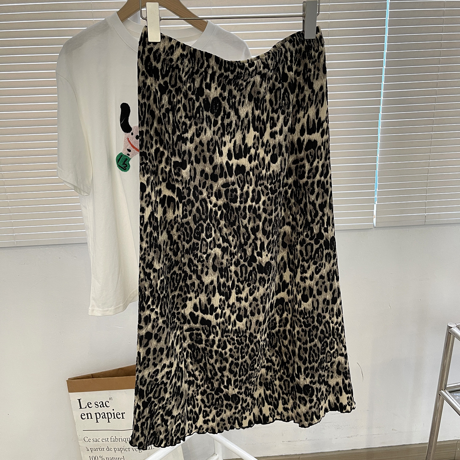 Rok Pola Macan Tutul Berkerut Modis Rok A-Line Pinggang Tinggi Pinggang Elastis Gadis Pedas Rok Bungkus Pinggul Terlihat Kurus Rok Setengah Badan Wanita Musim Panas Model Baru
