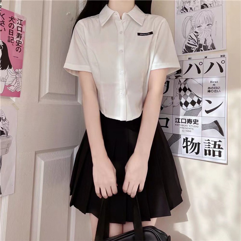 Kemeja ketat gaya kuliah wanita, kaus seragam jk, kemeja pendek ramping ramping, rok lipit