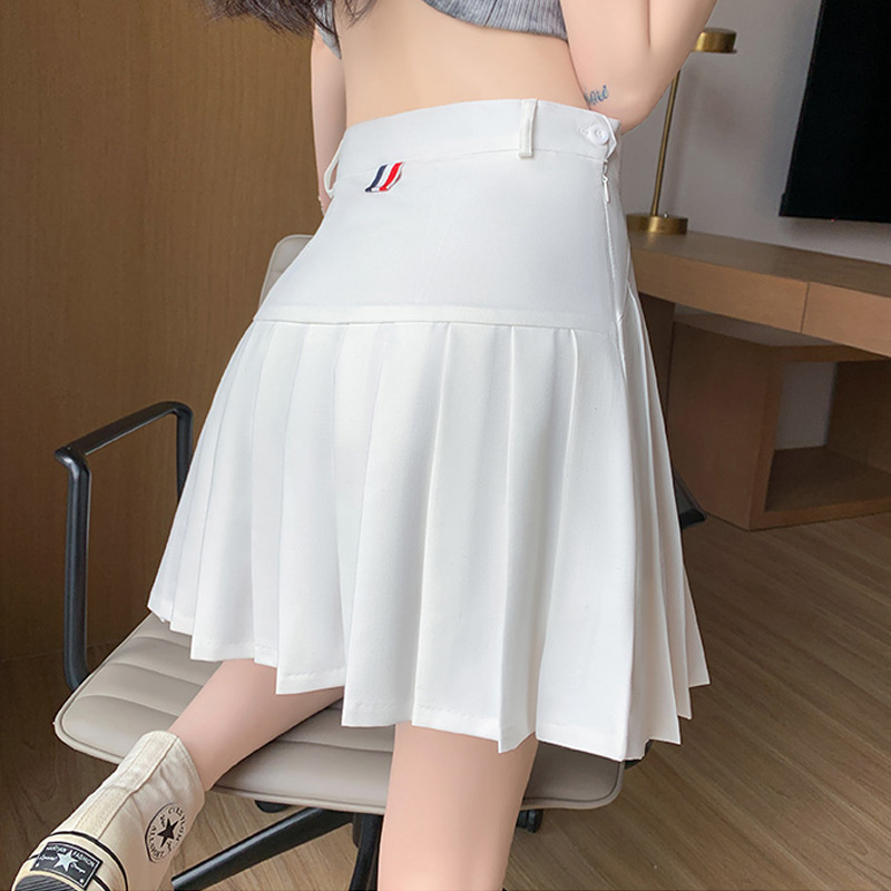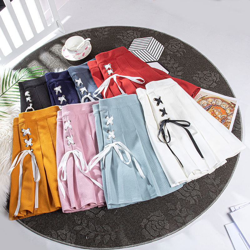Rok lipit wanita pinggang tinggi musim panas rok a-line pelajar pendek ritsleting rok bahan setelan diperpanjang 1 potong pengiriman