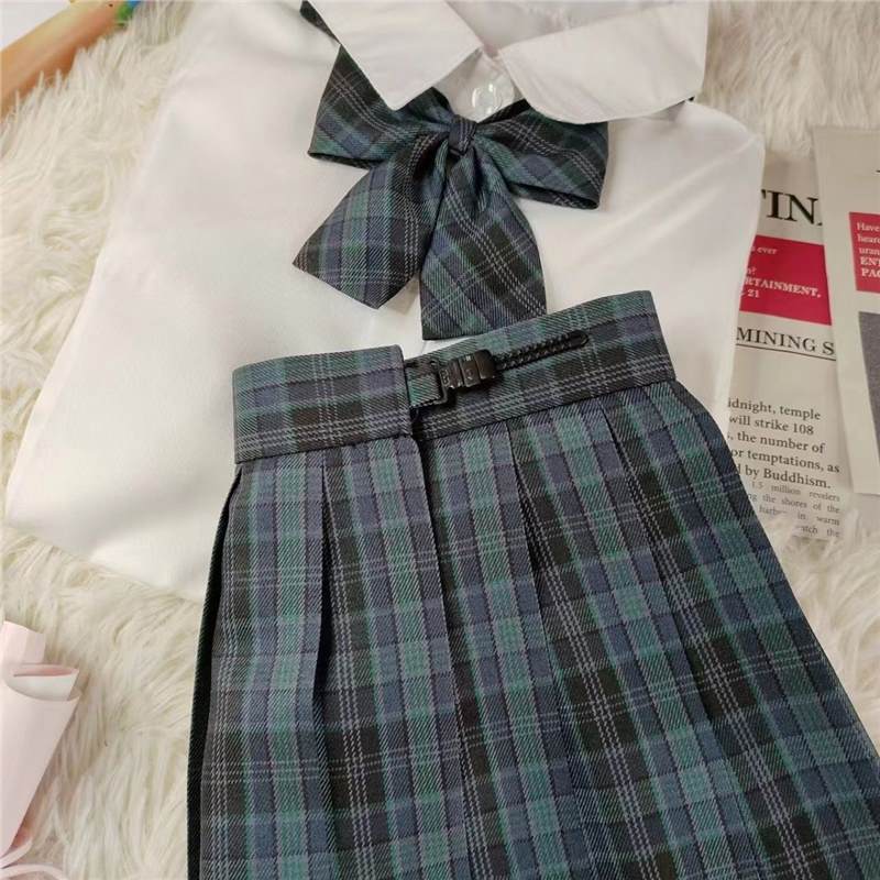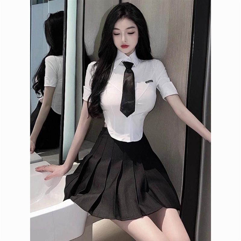Setelan Baju Atasan Rok Lipit Membentuk Tubuh Asli Seragam JK Warna Putih Setelan Baju Atasan Kemeja Pelangsing Pinggang Gaya Sekolah Gadis Pedas