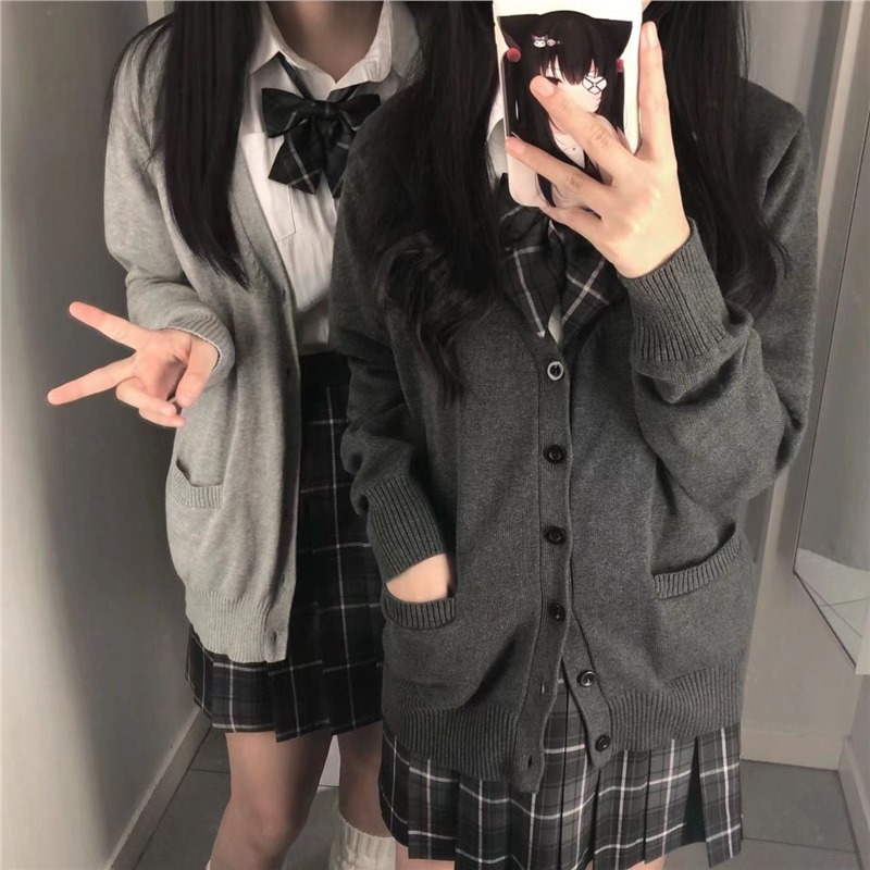 Kawashima Setelan Rok Lipit Setengah Tubuh untuk Gaya Sekolah Pakaian Seragam Jk Jaket Rajutan Sweater Gaya Kampus