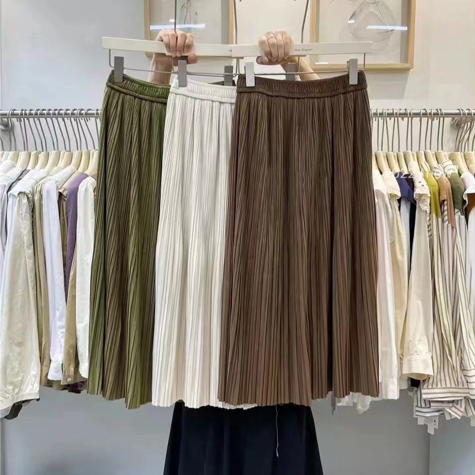Rok lipit wanita pinggang tinggi, rok lipit wanita, rok pinggang tinggi, Rok Musim Semi Musim Panas a-line, Rok anti eksposur ukuran plus musim gugur dan musim dingin 2024